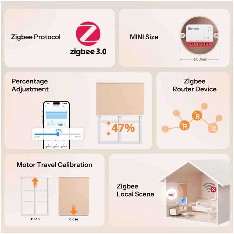 Fonctions du module volet roulant Zigbee SONOFF MINI-ZBRBS :